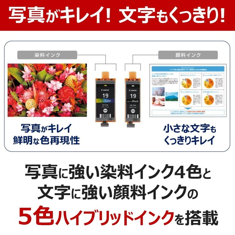 モノクロ 約9.0 ipm カラー 約5.5 ipm 大容量給紙普通紙50枚 はがき20枚 A4フチなし印刷可能