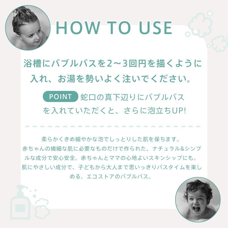 ecostore バブルバス 500mL エコストア 泡風呂 沐浴剤 保湿 赤ちゃん 沐浴 子供 キッズ お風呂 バスタイム 柔らかい泡 しっとり【ポイント10倍】 【送料無料】