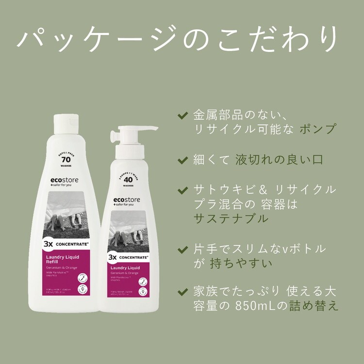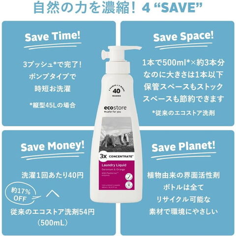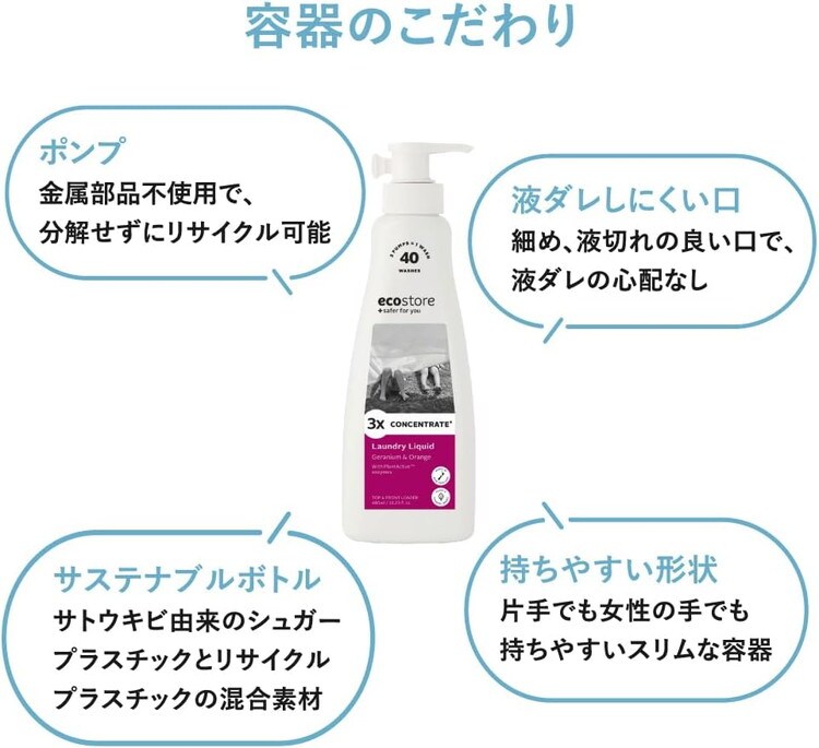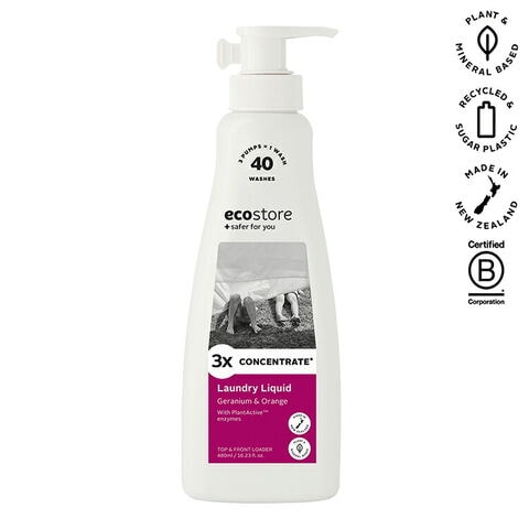 ecostore ランドリーコンセントレートポンプ ゼラニウム&オレンジ 480mL エコストア 洗剤 液体洗剤 肌にやさしい 天然 植物由来 敏感肌 低刺激【ポイント10倍】 【送料無料】