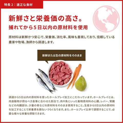 新鮮鶏肉と卵、ブリティッシュ・コロンビア州フレイザーバレー産の新鮮葉野菜をたっぷり使用しています。あらゆる種類と年齢の犬を最高の健康状態に導きます。