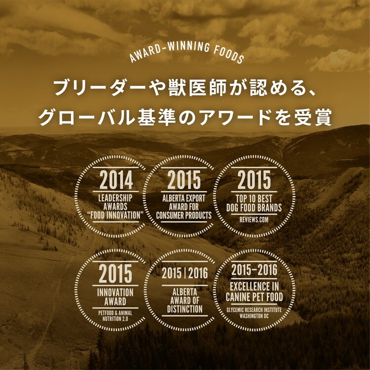 ワイルド・プレイリーはカナダ最高品質の原材料を使用しています。地元農場産の放し飼い鶏肉と卵、地元北部湖産の天然魚、また太陽が降りそそぐ地元果樹園産の丸ごとフルーツと野菜、すべて保存料ゼロで新鮮搬送、類まれなる栄養と美味しさがぎっしり詰まっています。アカナの製品は全て自社キッチンで自ら製造しています。