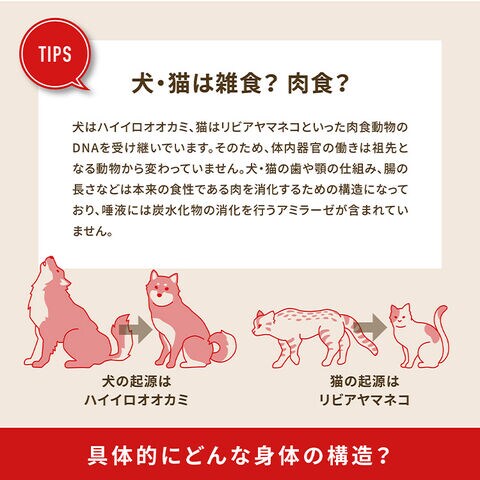 新鮮鶏肉 (32%), 生サーモン (5%), 生七面鳥肉 (5%), 生の丸ごとニシン (5%), 生の丸ごとサバ (5%), 新鮮鶏内臓 (レバー, 心臓) (4.5%), 生七面鳥レバー(4%), 新鮮卵 (4%), ディハイドレート鶏肉 (4%), ディハイドレート七面鳥肉(4%), ディハイドレートニシン (4%), ディハイドレート鶏レバー (4%), ディハイドレート卵 (4%), 生ウサギ肉 (4%), 丸ごと赤レンズ豆, 丸ごとピント豆, 丸ごと緑レンズ豆, 丸ごとヒヨコ豆, 丸ごと白インゲン豆, 丸ごとエンドウ豆, エンドウ豆スターチ, ミスカンサスグラス粉末, ポロック油 (1%), 鶏脂肪 (0.5%), 新鮮丸ごとカボチャ, 新鮮丸ごとバターナッツスクワッシュ, 乾燥ケルプ, 乾燥チコリールート, 新鮮丸ごとリンゴ, 新鮮丸ごとニンジン, 新鮮丸ごと洋梨, 新鮮丸ごとズッキーニ, 乾燥ビール酵母, 加水分解酵母, 新鮮ビートの葉, 新鮮ケール, 新鮮ホウレン草, 新鮮カブラ菜, 丸ごとクランベリー, 丸ごとブルーベリー, 丸ごとサスカトゥーンベリー, ゴボウ, ラベンダー, マシュマロルート, オオアザミ, ローズヒップ, ターメリック 酸化防止剤: 植物油から抽出したトコフェロール: 121mg, クエン酸: 40mg, ローズマリーエキス: 80mg 添加栄養素 (1kgあたり): 3a890 塩化コリン (コリン): 1400mg, 3b606 (亜鉛: 75mg), 3a314 ナイアシン: 50mg, 3a821 ビタミンB1: 25mg, 3b406 (銅: 11.3mg), 3a825i ビタミンB2: 10mg, 3a841 ビタミンB5: 8mg, 3a831 ビタミンB6: 7.5mg, 3a316 葉酸: 0.75mg, ビタミンB12: 0.1mg, 3a700 ビタミンE: 50 IU 添加腸球菌: 4b1707 エンテロコッカスフェシウム菌NCIMB 10415 1x10^9 CFU