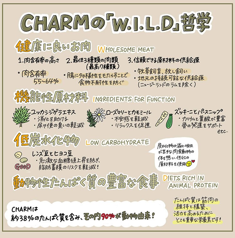 チャーム パピーには、筋肉の発達と免疫系をサポートするための動物性たんぱく質が90%配合されています。Non-GMO(非遺伝子組み換え)原材料を使用し、トウモロコシや小麦、大豆を含まない100%グレインフリーで、人工着色料や香料は使用していません。消化しやすい鶏肉を第一原材料としており、ニシンやニシン油由来のオメガ3脂肪酸が視力と脳の発達を促進します。子犬が食べやすいように、キブルの大きさは小さめに作られています。愛犬が健康で幸せな一生を送れるよう、健康的でバランスの取れた栄養が詰まっています。