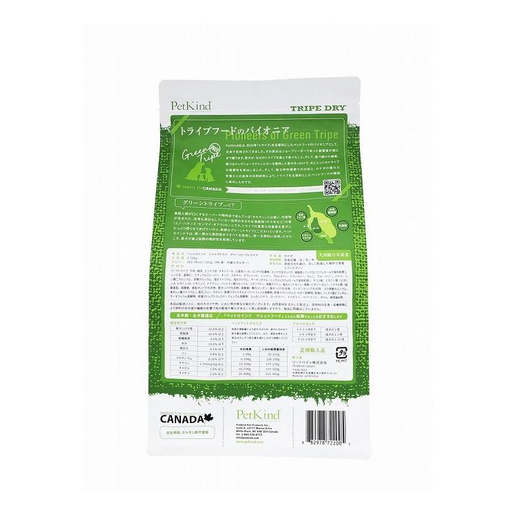 犬の本能に働きかける嗜好性抜群のドッグフード。ビーフトライプが主原料のドライフード。グレイン&グルテン不使用、注目素材「キノア」配合。グリーントライプには犬に必要なアミノ酸、必須脂肪酸、ビタミン、ミネラルが豊富に含まれています。