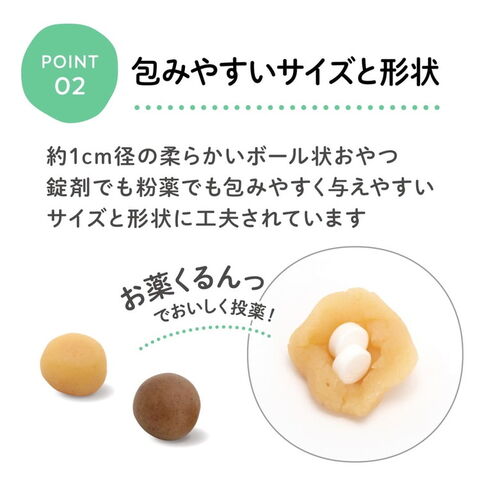 メディボールはお薬が苦手なネコちゃんのために臨床獣医師が開発した投薬補助用のおやつです。かつお風味で大変美味しく食べられます。とてもやわらかい質感で、簡単にお薬を包み込むことができるので安心して与えていただけます。