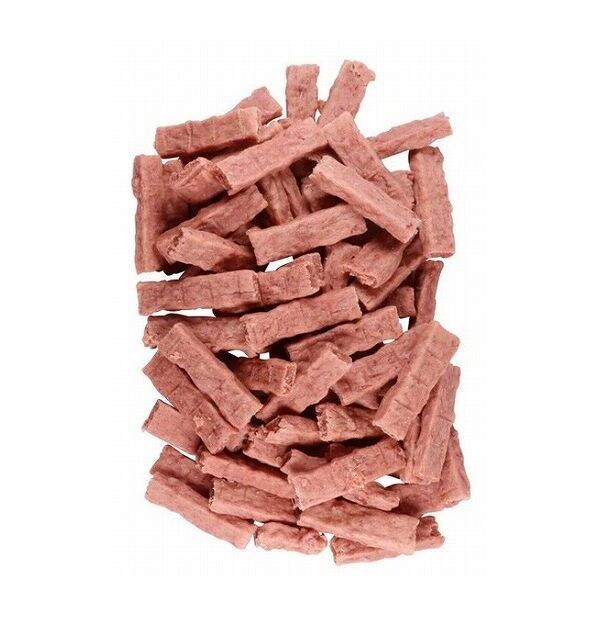 肉類(鶏肉、馬肉)、大豆たん白、増粘安定剤(ソルビトール)、コラーゲン、小麦グルテン、プロピレングリコール、食塩、pH調整剤、酸化防止剤(エリソルビン酸Na)、保存料(ソルビン酸K、デヒドロ酢酸Na)、発色剤(亜硝酸Na)、着色料(カラメル、赤106)、乳酸カルシウム、ビタミンE