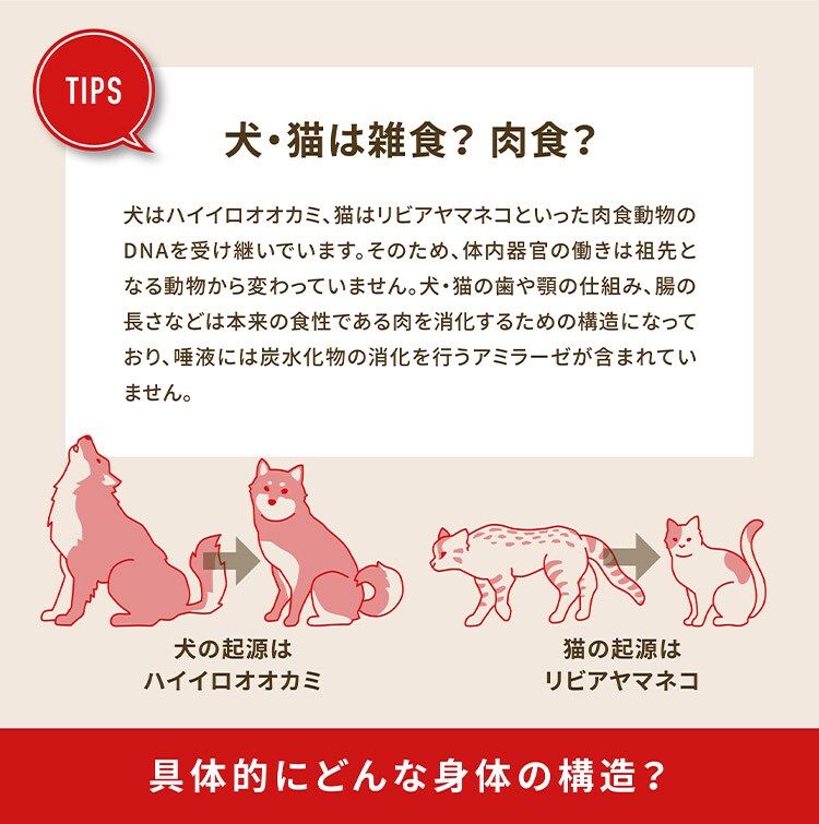 新鮮鶏肉(13%), 新鮮全卵(7%), 新鮮七面鳥肉(7%), 新鮮丸ごとニシン(7%), 新鮮鶏レバー(6%), 新鮮丸ごとカレイ(4%), 新鮮七面鳥レバー(4%), 新鮮鶏ネック(4%), 新鮮鶏心臓(4%), 新鮮七面鳥心臓(4%), ディハイドレート鶏肉(4%), ディハイドレート七面鳥肉(4%), ディハイドレート丸ごとサバ(4%), ディハイドレート丸ごとイワシ(4%), ディハイドレート丸ごとニシン(4%), 丸ごと赤レンズ豆, 丸ごと緑レンズ豆, 丸ごとグリーンピース, レンズ豆繊維, 丸ごとヒヨコ豆, 丸ごとイエローピース, 丸ごとピント豆, 鶏軟骨(1%), 丸ごと白インゲン豆, ニシン油(1%), 鶏脂肪(1%), 七面鳥軟骨(1%), フリーズドライ鶏レバー, フリーズドライ七面鳥レバー, 新鮮丸ごとカボチャ, 新鮮丸ごとバターナッツスクワッシュ, 新鮮丸ごとズッキーニ, 新鮮丸ごとパースニップ, 新鮮ニンジン, 新鮮丸ごとレッドデリシャスリンゴ, 新鮮丸ごとバートレット梨, 新鮮ケール, 新鮮ホウレン草, 新鮮ビートの葉, 新鮮カブラ菜, ブラウンケルプ, 丸ごとクランベリー, 丸ごとブルーベリー, 丸ごとサスカトゥーンベリー, チコリールート, ターメリック, オオアザミ, ゴボウ, ラベンダー, マシュマロルート, ローズヒップ 添加栄養素(1kg当たり): 亜鉛キレート: 100mg 添加腸球菌:エンテロコッカスフェシウムNCIMB10415:600x10^6CFU