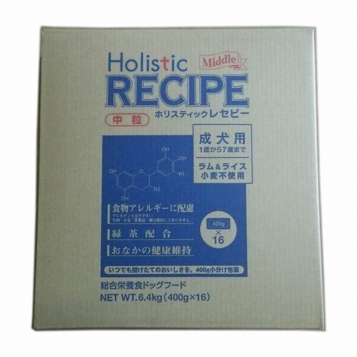 ●「ホリスティック レセピー ラム&ライス 中粒 成犬用(1歳から7歳まで) 6.4kg」は、健康で健やかな毎日を過ごす為に適したドックフードです。