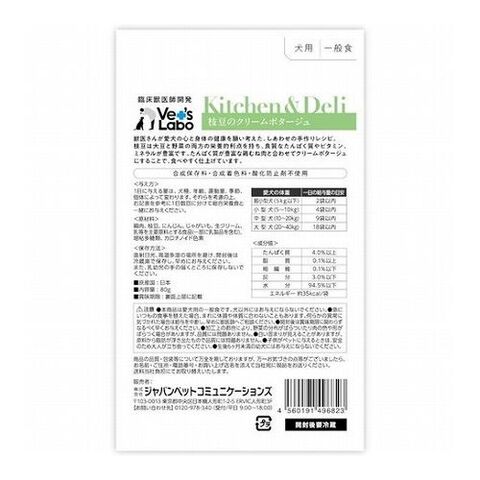 キッチン&デリ 枝豆のクリームポタージュ 80g ジャパンペットコミュニケーションズ 犬 ドッグフード ご飯 スープ ペット用 ペットご飯【ポイント10倍】