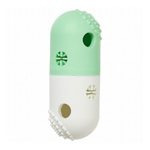 カプセルの中にトリーツを入れて宝探し。表面の突起でデンタルケアの効果も期待できます。菊割れの穴にガムを刺せば丸のみ防止ホルダーとしても。