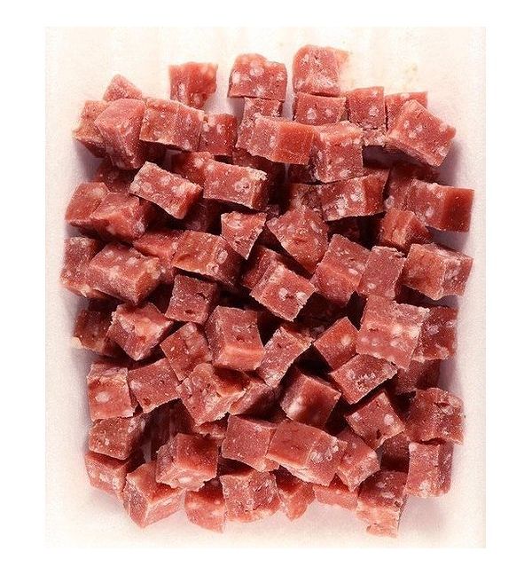 鹿とライスを配合したおやつです。一粒ずつ与えやすいキューブタイプ。関節の成分のひとつである、グルコサミンとコンドロイチンを配合。