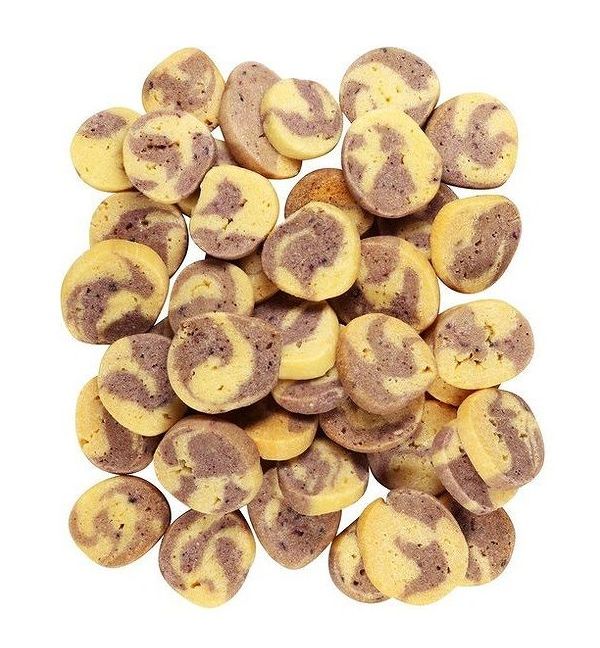 クッキー生地にブルーベリーを練り込んだ見た目も可愛いおやつです。スキムミルクでカロリーを抑え、まろやかな味わいに仕上げました。一口サイズでしつけのご褒美にも最適です。