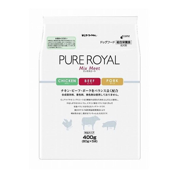 チキン・ビーフ・ポークをバランス良く配合したエコノミータイプのピュアロイヤルです。