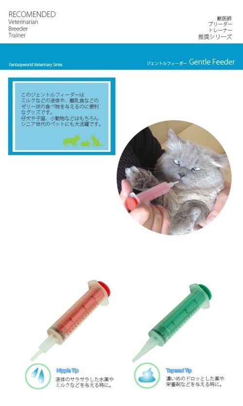 オールペット用注射器型フィーダー仔犬・子猫・ウサギ・鳥・爬虫類など用。液状の薬・ミルク・水などを与える時に。■サイズ:ニップルタイプΦ3.5×L12cmテーパータイプΦ3.5×L11.5cm