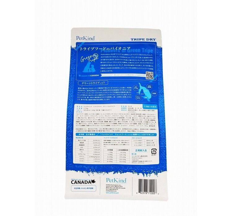 犬の本能に働きかける嗜好性抜群のドッグフード。ラムトライプが主原料のドライフード。グレイン&グルテン不使用、注目素材「キノア」配合。グリーントライプには犬に必要なアミノ酸、必須脂肪酸、ビタミン、ミネラルが豊富に含まれています。