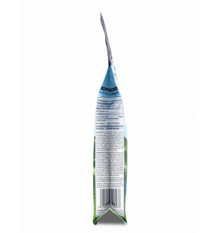 生肉・内臓・魚介類…96%(ラム生肉、ラムハート生肉、ラムトライプ生肉、ラムレバー生肉、ラムキドニー生肉、ラムラング生肉、ニュージーランド緑イ貝、ラムボーン)
