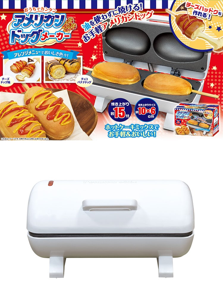 おうちで アメリカンドッグメーカー お手軽 油いらず ホットケーキミックス おうちでカンタン チーズハットグ チョコバナナ アレンジメニュー ふっくら ピーナッツ・クラブ S01HS-023WH【送料無料】