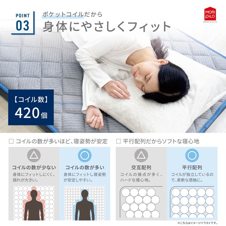 ・独立したコイルがそれぞれ身体の曲線に合わせて支えるポケットコイルマットレスです。