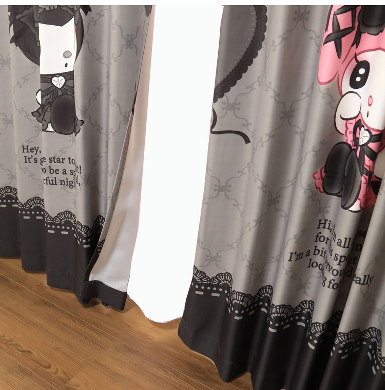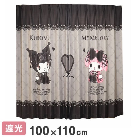 MORIPiLO サンリオ 遮光カーテン 幅100x110cm丈 2枚組 マイメロディ クロミ 真夜中のメロクロ (絵羽柄 つながる一枚絵アートカーテン) 洗える 可愛い グッズ sanrio【送料無料】