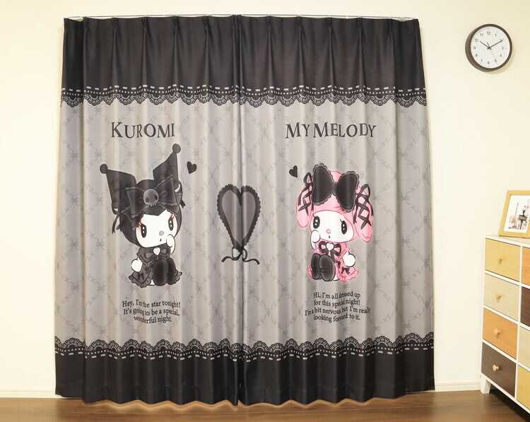 MORIPiLO サンリオ 遮光カーテン 幅100x135cm丈 2枚組 マイメロディ クロミ 真夜中のメロクロ (絵羽柄 つながる一枚絵アートカーテン) 洗える 可愛い グッズ sanrio キャラクター【送料無料】