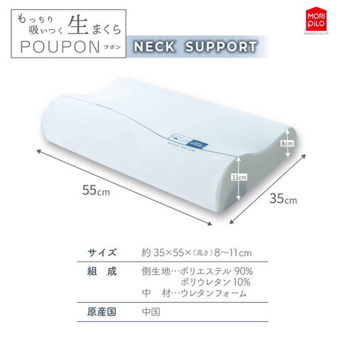 吸いつくもっちり生まくら モリシタ POUPON プポン 枕 波型 フラット やわらかめ 低反発 ウレタン 首 ピロー ふんわり もっちり 快眠 仰向け 横向き 枕難民【送料無料】