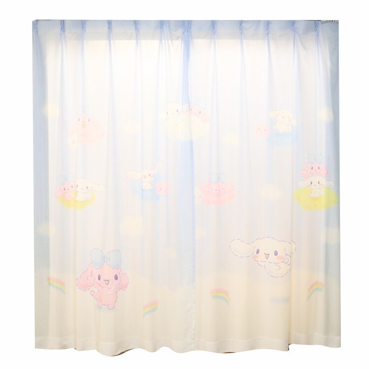 MORIPiLO サンリオ レースカーテン 幅100x133cm丈 2枚組 シナモロール (絵羽柄 つながる一枚絵アートカーテン) 洗える 可愛い グッズ sanrio シナモン ブルー キャラクター【送料無料】