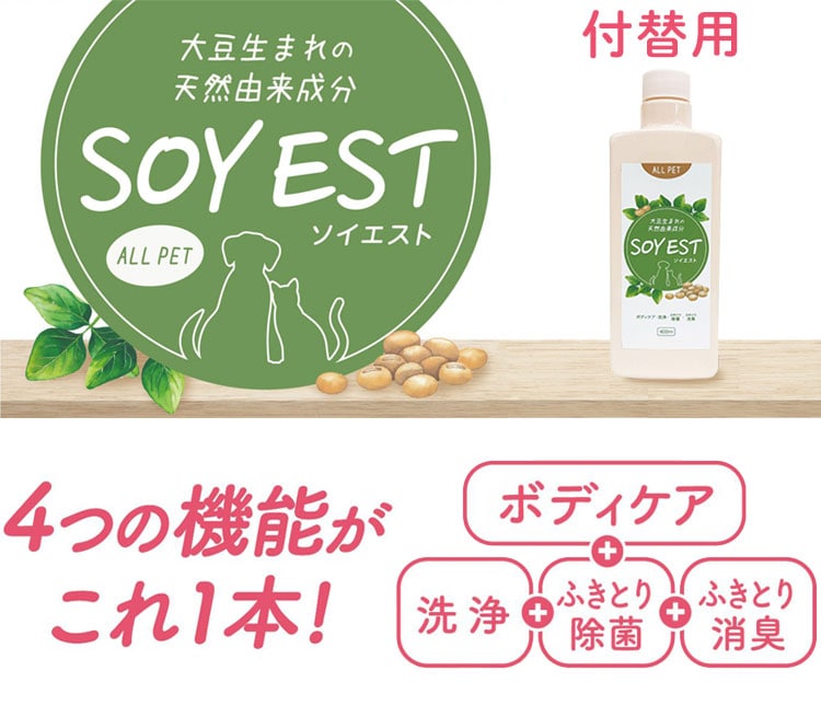 【3個セット】 ペット用 除菌 消臭 スプレー ソイエスト SOYEST 付替用 400ml ボディケア ふきとり 犬用 猫用 小動物 除菌剤 消臭剤 日本製 国産 オールペット Allpet 犬 猫 ペット 詰め替え 付け替え【ポイント10倍】