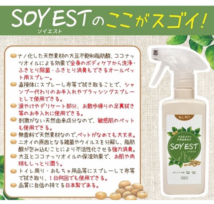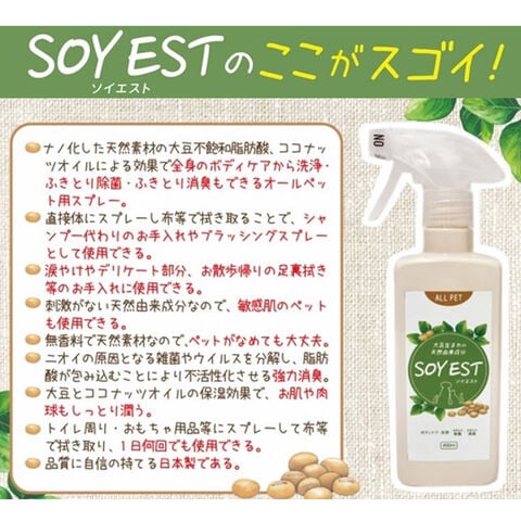 ペット用 除菌 消臭 スプレー ソイエスト SOYEST 本体 400ml ボディケア ふきとり 犬用 猫用 小動物 除菌剤 消臭剤 日本製 国産 オールペット Allpet 犬 猫 ペット【ポイント10倍】