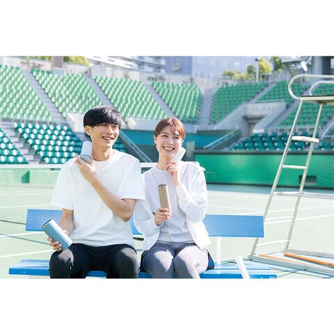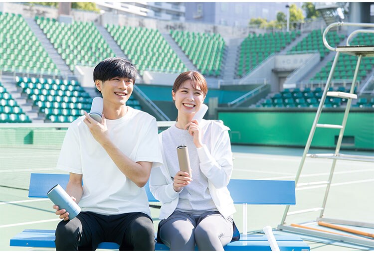 魔法瓶構造のホルダーで長時間冷たさキープ。