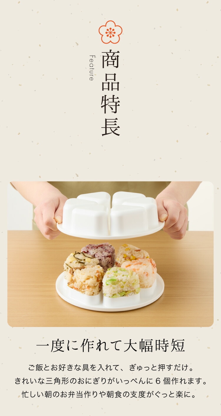 一度に1~6個のおにぎりが作れます。たくさん作りたい時に大幅時短!