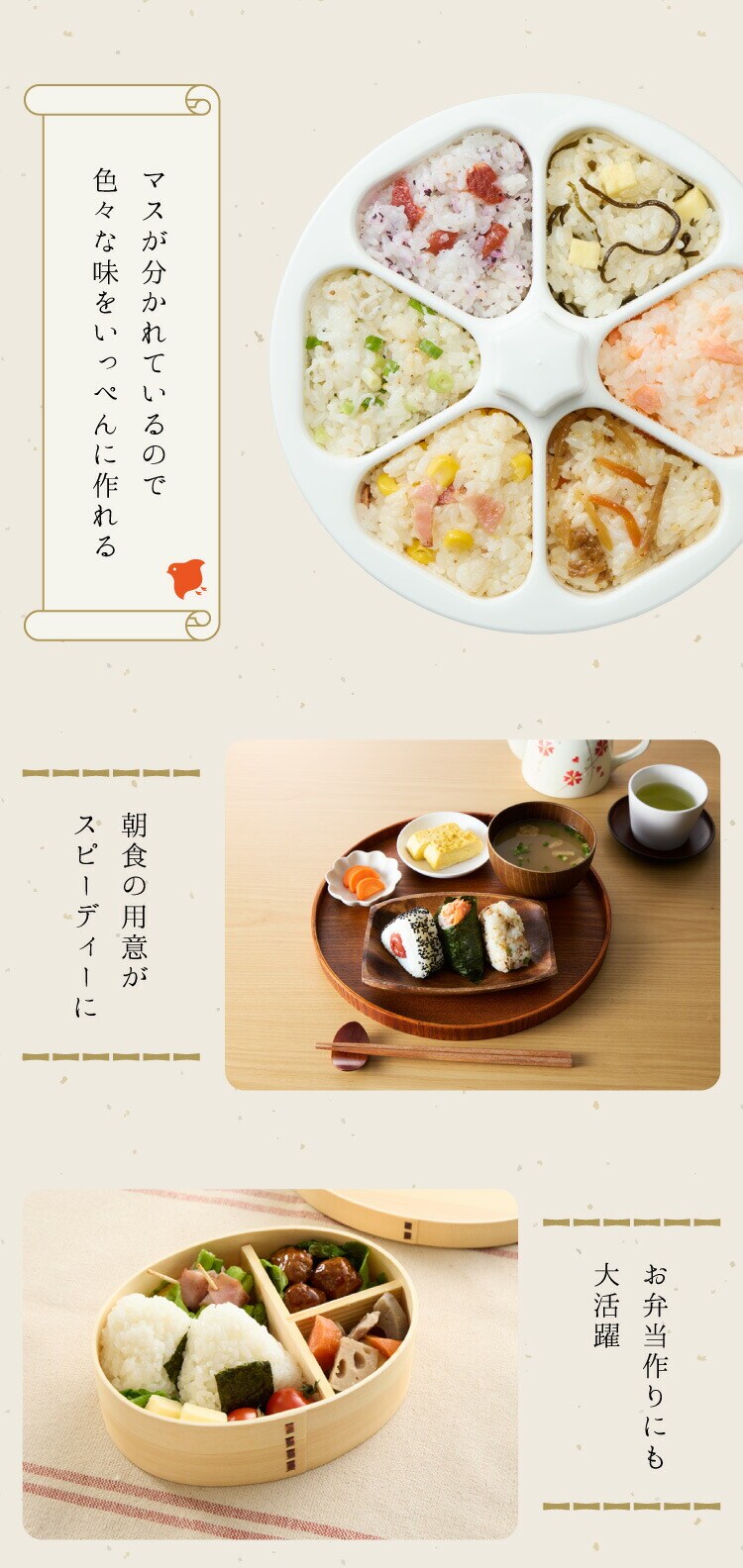 誰でも簡単にきれいな形のおにぎりが作れます。
