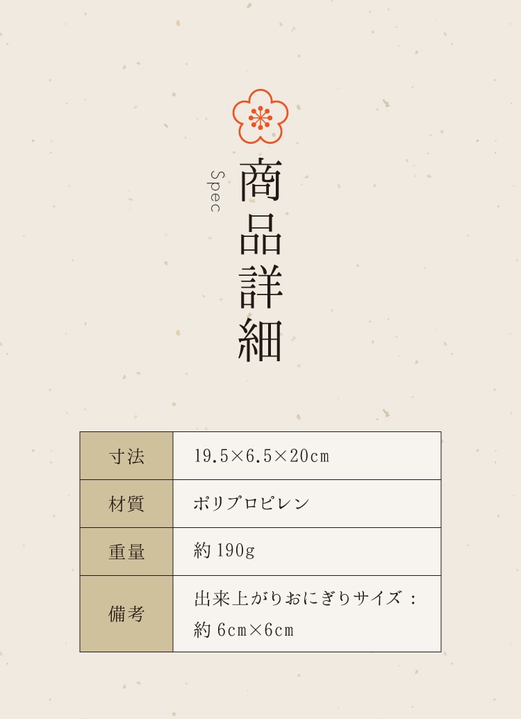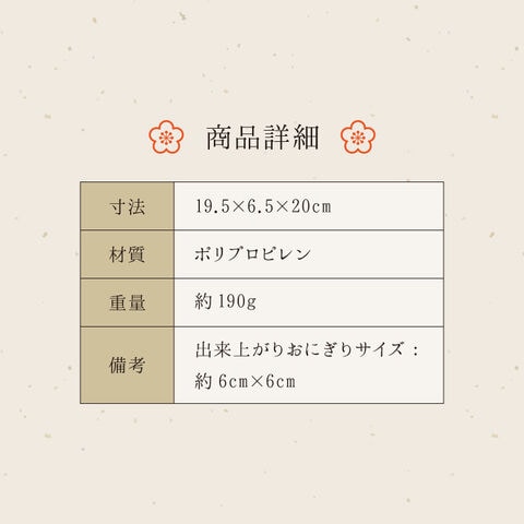 出来上がりおにぎりサイズ:(約)6cm×6cm
