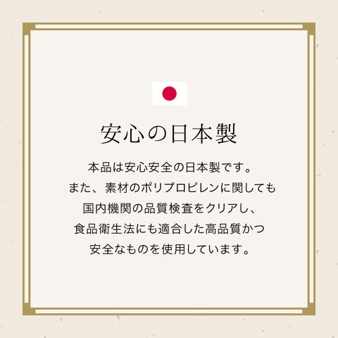 安心・安全なこだわりの日本製。