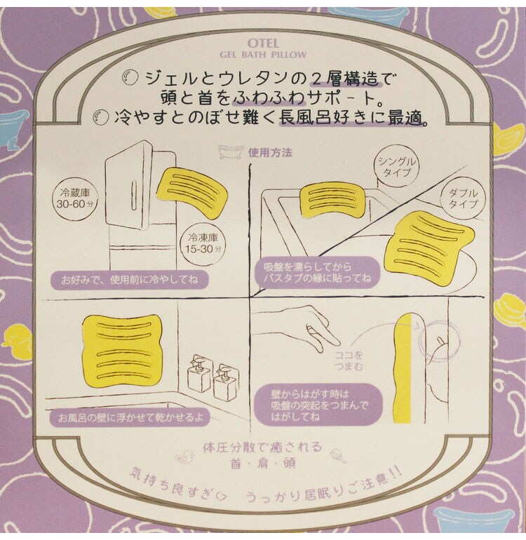 OTEL バスピロー 冷やせるお風呂枕 吸盤付き シングルサイズ 冷凍庫可 おふろまくら ととのうお風呂まくら 半身浴 ひんやり 冷たい お風呂グッズ お風呂用品 入浴【送料無料】