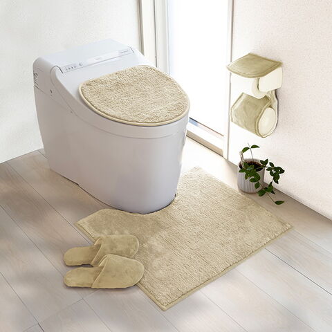 同じコクーンシリーズの便座クッション・デコフタシートを揃えれば、お気に入りの色でトイレを心地よい空間に。ふわふわのカットパイルで足元があたたかく気持ち良い。飛び乗ったりすると、すべってけがをすることがあります。