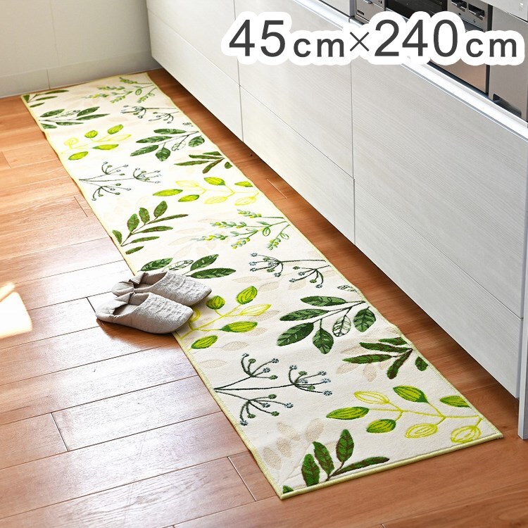 オカ キッチンマット 45×240cm リーフブレス(グリーン)日本製 台所 フローリング 汚れ防止 汚れを防ぐ【送料無料】