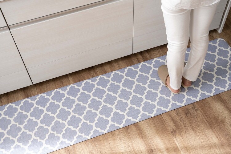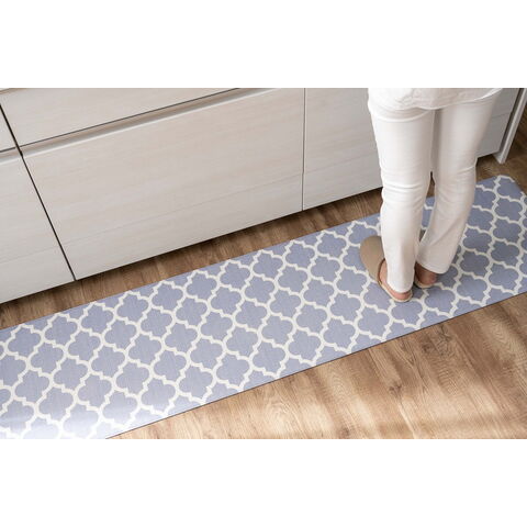 もっちり素材を使ったマットなので踏み心地がよく、立ち仕事では足腰の負担を減らしてくれます。シンプルで特徴的なモロッカンタイル柄のキッチンマット。素材のニオイが気になる方は風通しのよいところで陰干し。また、ご使用場所では定期的な換気をおすすめします。本製品はお洗濯できません。
