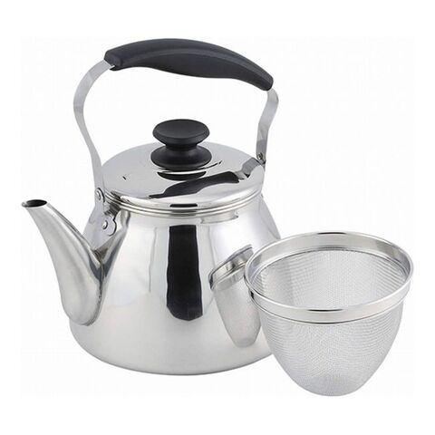 材質:本体/ステンレス鋼(クロム18%・ニッケル8%)(底の厚さ/0.5mm) 蓋/ステンレス鋼(クロム14%) 取っ手・つまみ・座板/フェノール樹脂 茶こし/スタンレス鋼