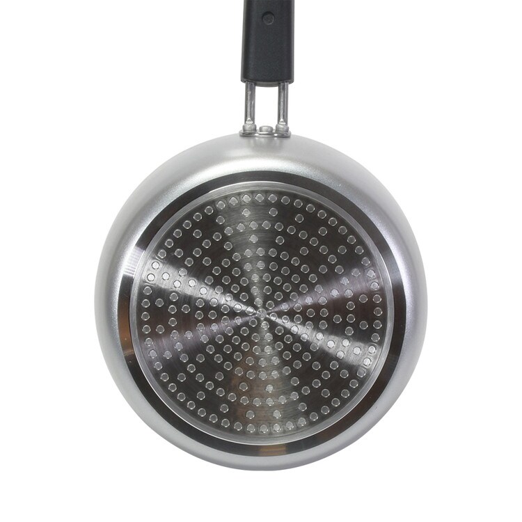 スクエア形状のハンドルで握りやすい。内面はフッ素樹脂加工付き。