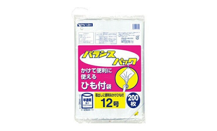 【5個セット】 オルディ バランスパック ひも付規格袋 半透明 12号 200枚入 BPN12H (ポリ袋)【送料無料】