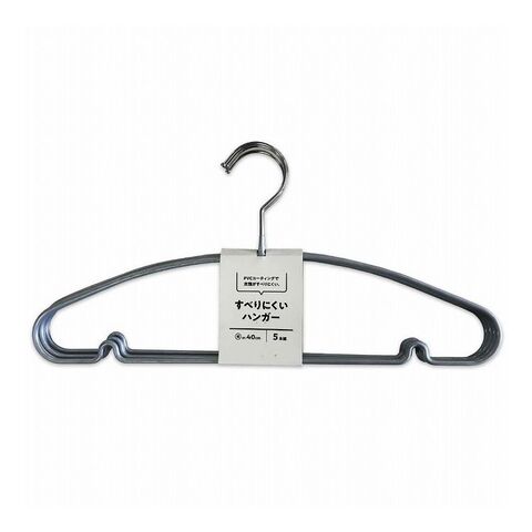 掛けた衣服の落下を防ぐ。PVCコーティングのすべりにくい衣類ハンガー。滑りにくい素材、PVCコーティングがされたハンガー。5本組。