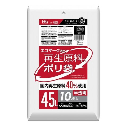 【10個セット】 ハウスホールドジャパン 再生原料40%入 ポリ袋 45L 半透明 10枚入 GE50 再生原料40%使用 ごみ袋 30リットル 小さめサイズ【送料無料】