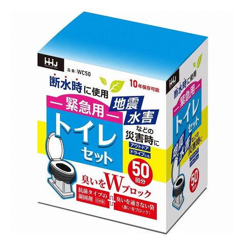 ハウスホールドジャパン 緊急用 トイレセット 50回分 WC50 トイレ袋 凝固剤 簡易トイレ 抗菌 断水時 災害時 対策【送料無料】