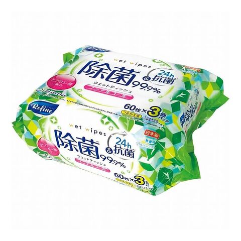 【3個セット】 Life-do.Plus リファイン ノンアルウェットティッシュ60枚3P 食卓でのおしぼりとして テーブルふきや身のまわりのお掃除に便利です【送料無料】