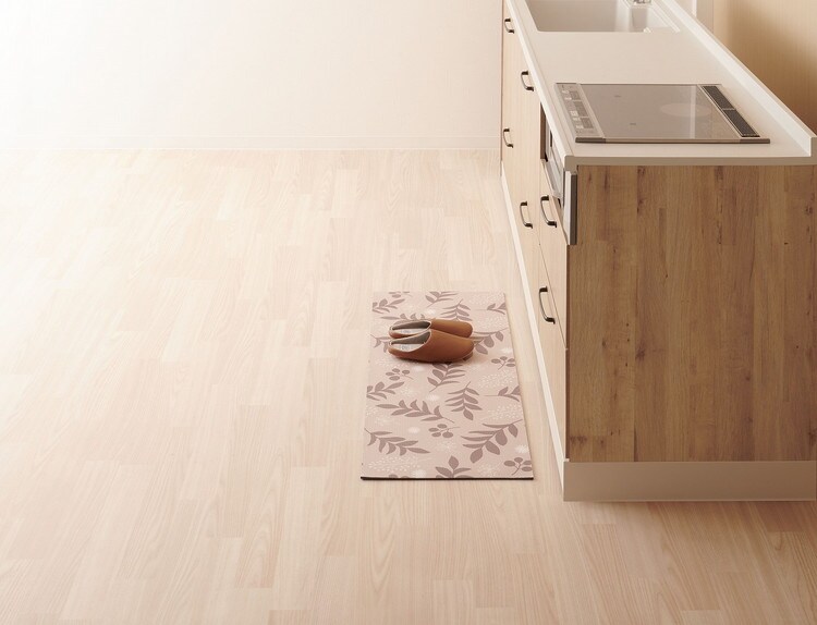 ハサミで簡単にカットできるから、キッチンのサイズにぴったり合わせて使える。裏面はすべりにくい素材でズレにくい。軽い汚れであれば水拭きで、汚れのひどい場合は水で薄めた中性洗剤や住居用洗剤で拭き取った後、洗剤が残らないように水拭きし、よく乾燥させてください。※丸洗いすることはできません。