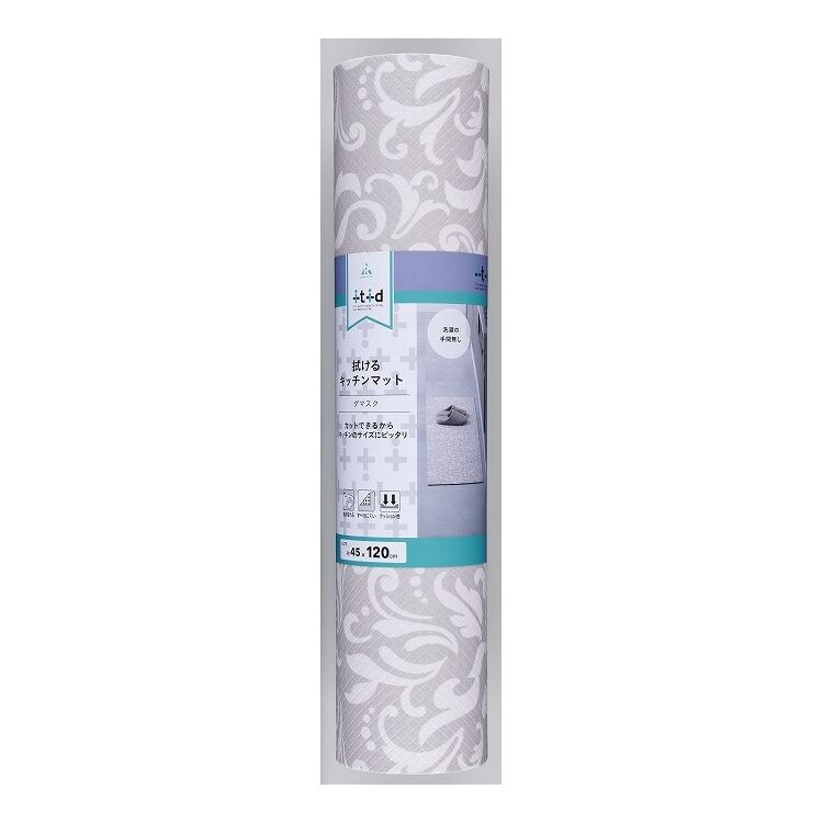 アール 拭けるキッチンマット 45×120cm ダマスク LK-102 お手入れ簡単 足に優しい 疲れにくい【送料無料】