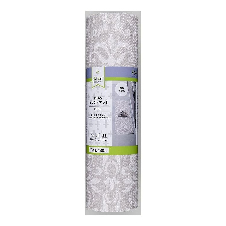 アール 拭けるキッチンマット 45×180cm ダマスク LK-104 お手入れ簡単 足に優しい 疲れにくい【送料無料】