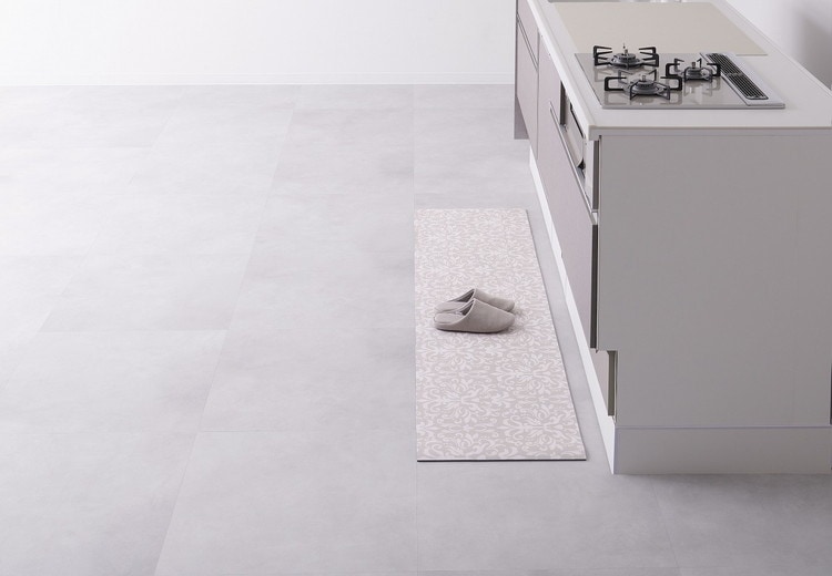 ハサミで簡単にカットできるから、キッチンのサイズにぴったり合わせて使える。裏面はすべりにくい素材でズレにくい。軽い汚れであれば水拭きで、汚れのひどい場合は水で薄めた中性洗剤や住居用洗剤で拭き取った後、洗剤が残らないように水拭きし、よく乾燥させてください。※丸洗いすることはできません。