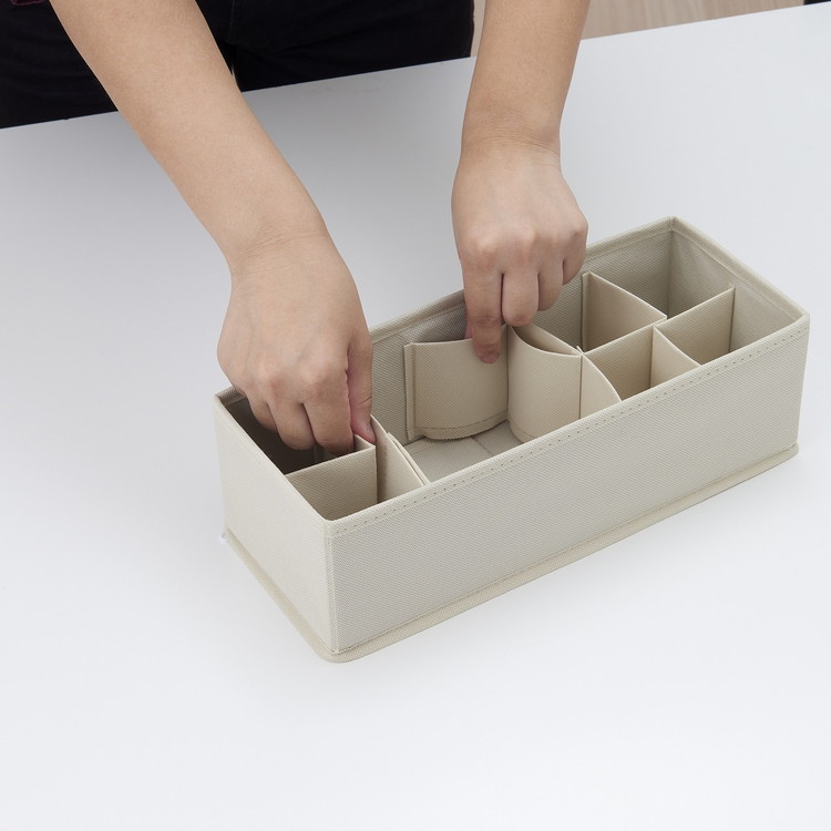 収納したいものにあわせて中の仕切りサイズを自由に変えられる。