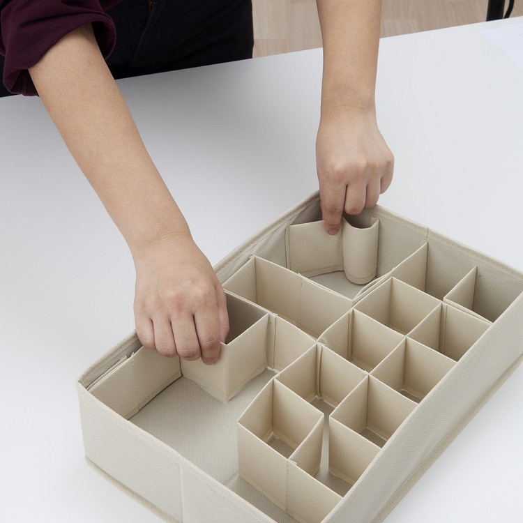収納したいものにあわせて中の仕切りサイズを自由に変えられる。